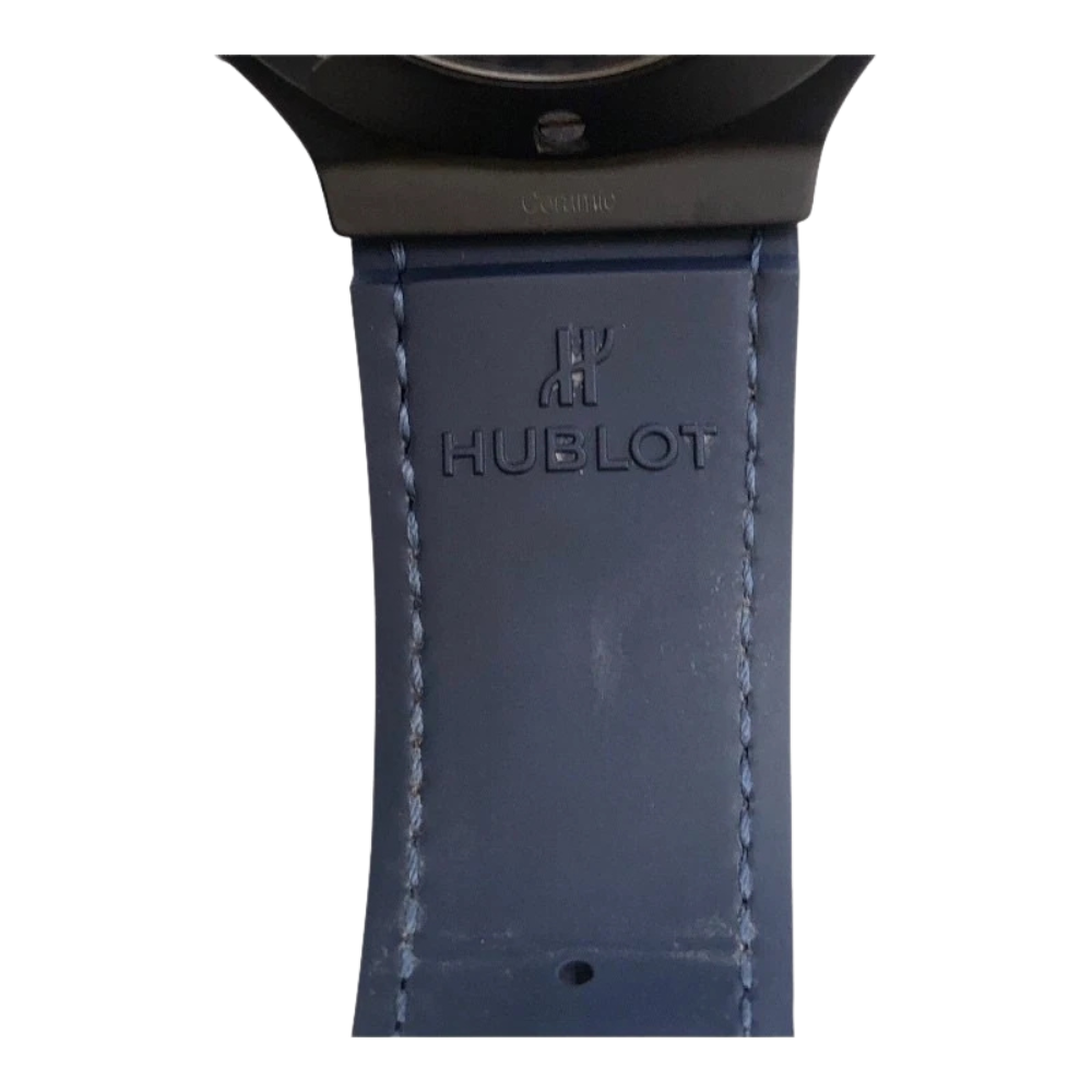 The H Big Bang Ceramic Blue Ref. 301.CI.7170.RX is a bold expression of H’s renowned “Art of Fusion”. Featuring a 44 mm satin-finished black ceramic case and a striking blue sunray dial, this chronograph fuses modern materials with avant-garde design. Its combination of sportiness, strength, and elegance makes it a powerful statement piece for those with uncompromising style.