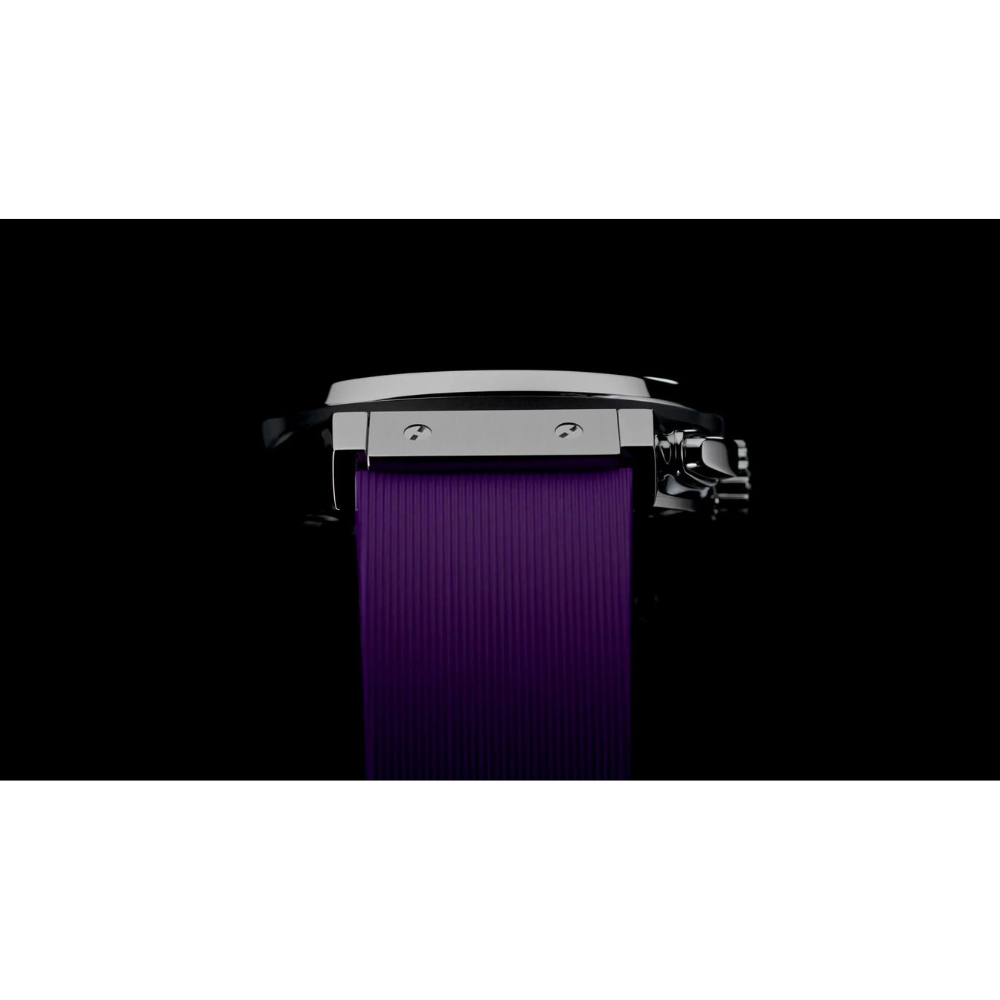 Strap: Black rubber with purple lining, titanium deployant clasp