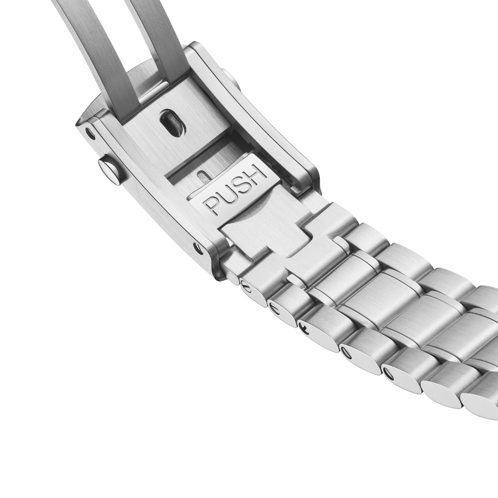 Bracelet: Polished-brushed stainless steel bracelet with folding clasp
