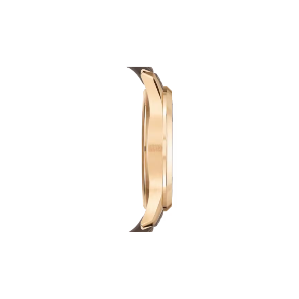 Strap: Chocolate brown composite rubber strap with 18K rose gold fold-over clasp