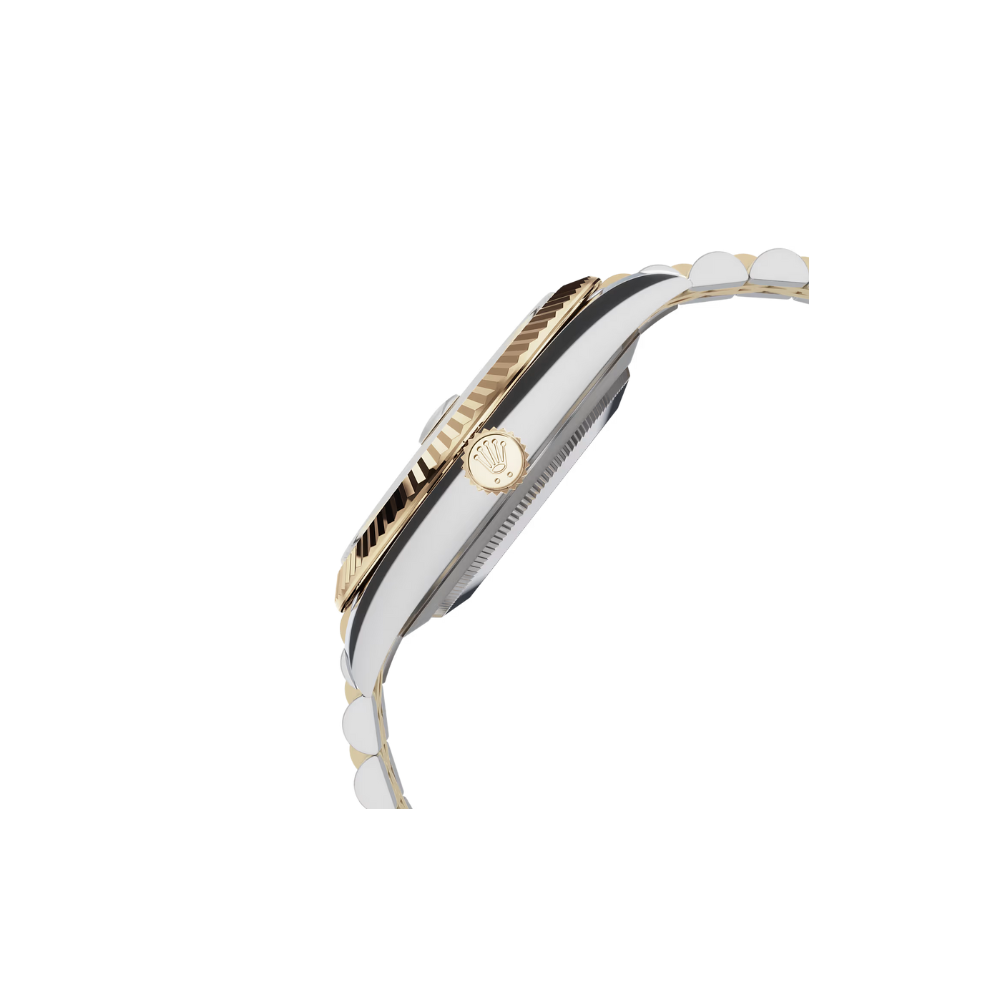 The RL Datejust 41 Ref. 126333‑0010 blends classic Datejust heritage with contemporary 41 mm proportions. Crafted in Yellow Rolesor — Oystersteel and 18 ct yellow gold — the watch combines durability and prestige. Its fluted 18 ct yellow gold bezel, champagne sunray dial with gold-applied Chromalight hour markers, and date display at 3 o’clock with Cyclops magnifier exemplify timeless RL design. Paired with a Jubilee bracelet and Oysterclasp with Easylink extension, it offers exceptional comfort and adjustability.