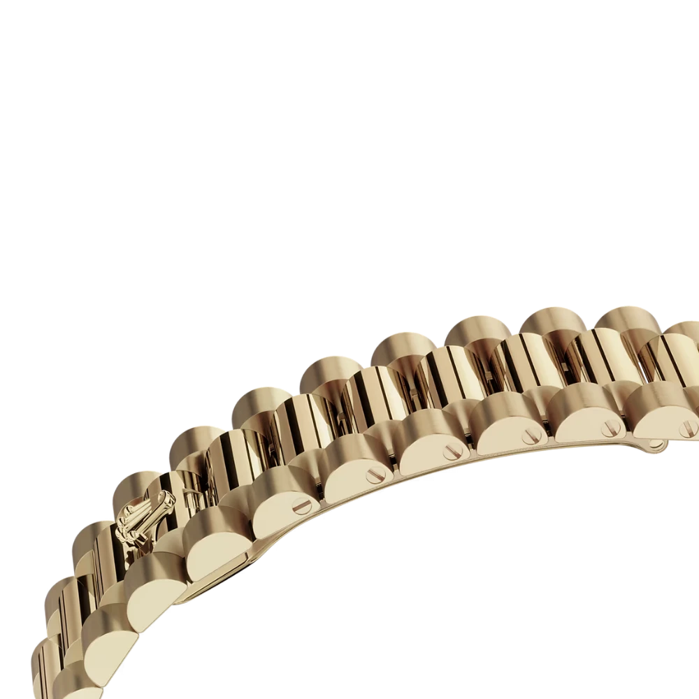 Type: President bracelet, exclusive to the Day-Date line (three-piece semi-circular links)