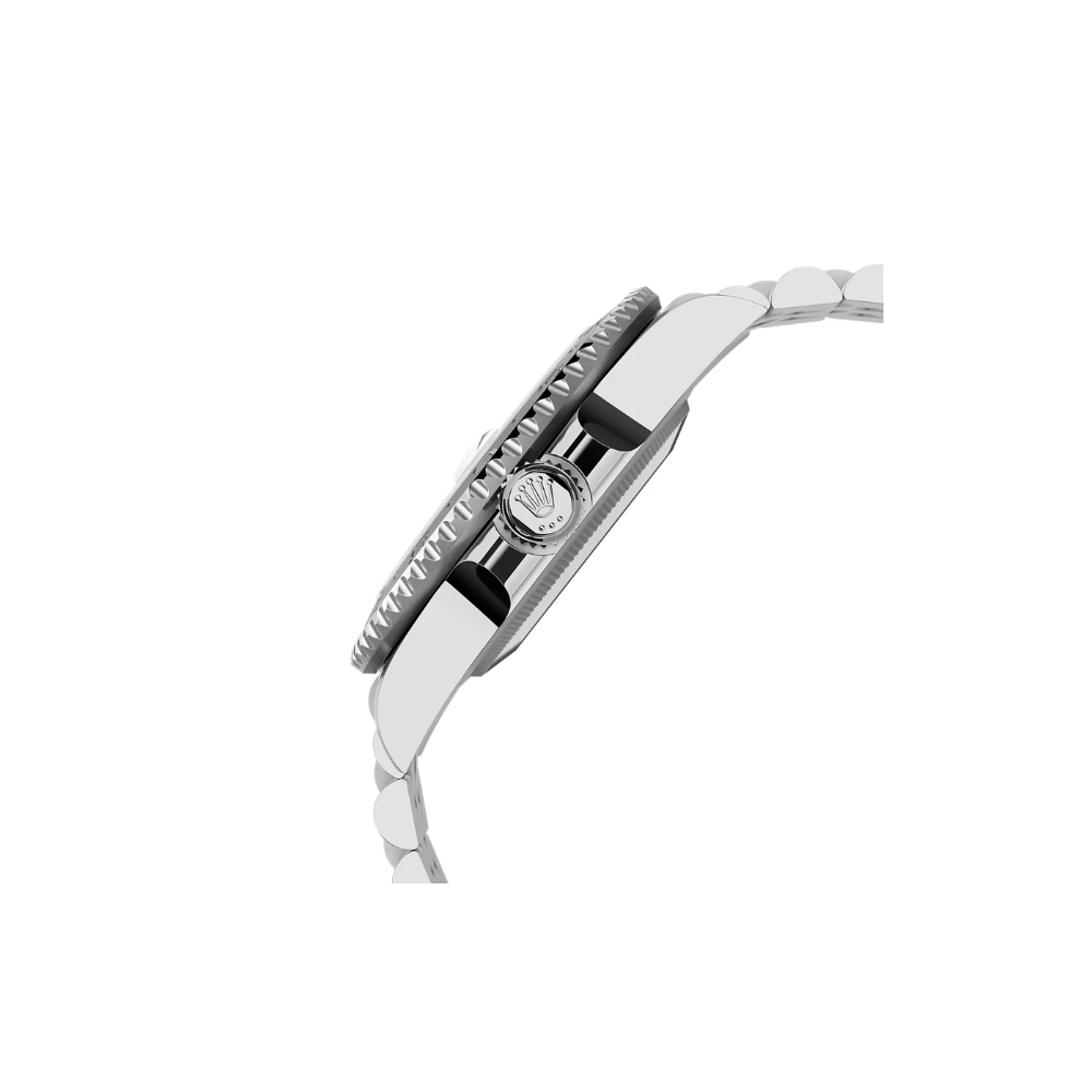 The RL GMT-Master II 40 mm Ref. M126710GRNR-0003 is a modern traveler’s watch that blends refined aesthetics with exceptional functionality. Crafted in Oystersteel, it features a striking black and grey Cerachrom ceramic bezel insert with engraved numerals, paired with a sleek black dial for optimum legibility. Designed to track multiple time zones simultaneously, this GMT-Master II is powered by RL’s cutting-edge Calibre 3285, ensuring precision, reliability, and robustness for those constantly on the move.