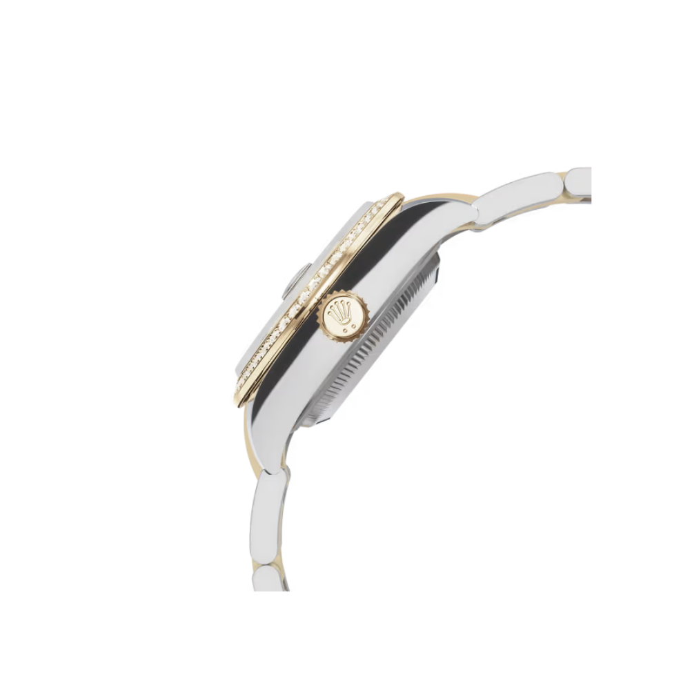 The RL Lady-Datejust Ref. 279383RBR-0020 exemplifies timeless elegance and refined luxury. Its 28 mm case, crafted from a combination of Oystersteel and 18 k yellow gold, paired with a diamond-set bezel, makes this watch a stunning statement of prestige and sophistication for women who appreciate classic style.
