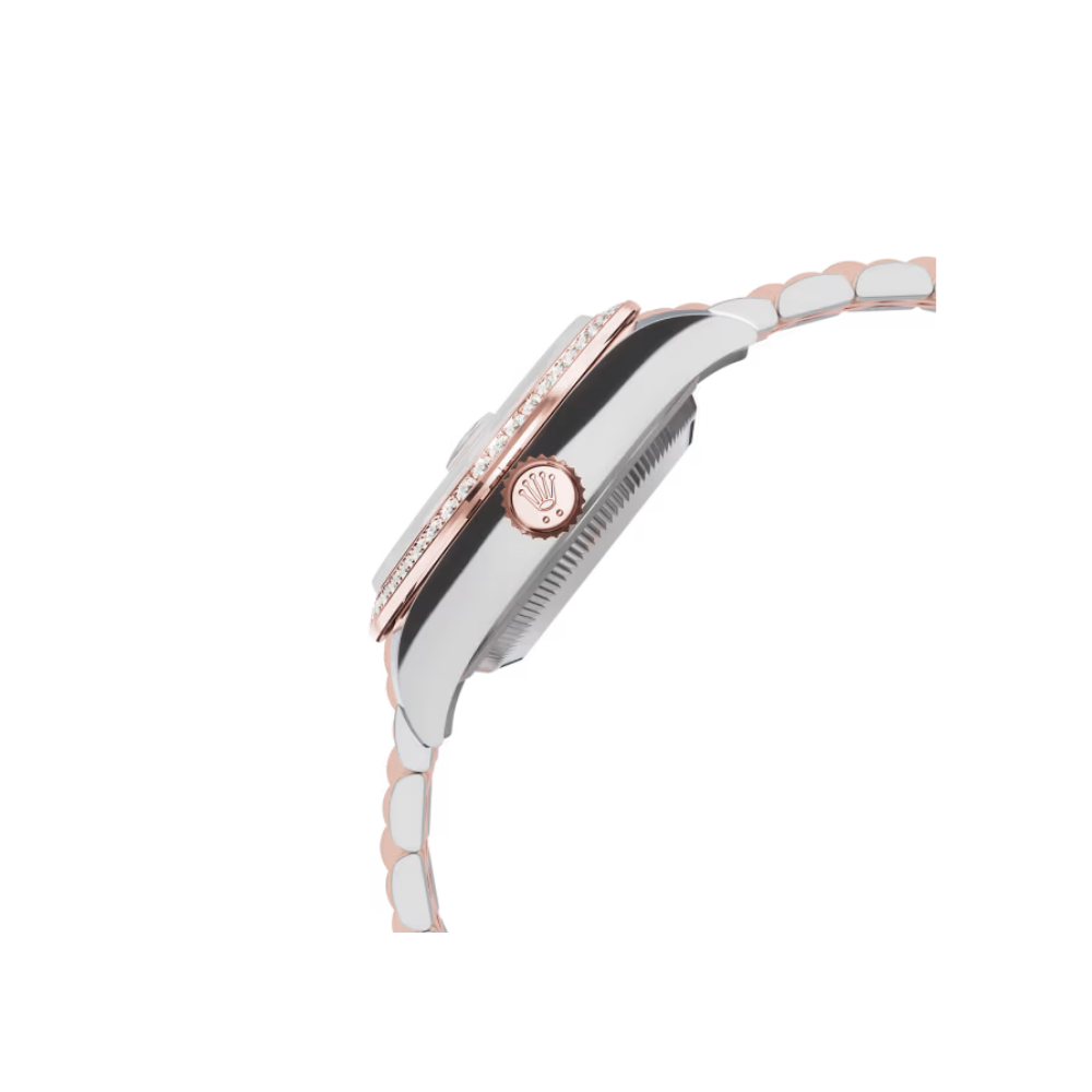 Its fluted bezel in white gold enhances the watch’s distinctive character, while the slate dial with sunray finish plays beautifully with light, shifting tones as the wrist moves. The Jubilee bracelet, known for its five-piece links and comfortable fit, completes the design with elegance and versatility, making this model suitable for both formal occasions and daily wear