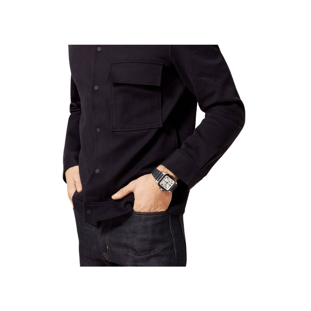 Housed in a 51.3 mm x 43.3 mm stainless steel case, this XL chronograph stands out with its angular architecture and sculpted lines, complemented by polished and brushed finishes. The black ADLC-coated bezel enhances the watch’s durability while adding a touch of stealthy refinement.