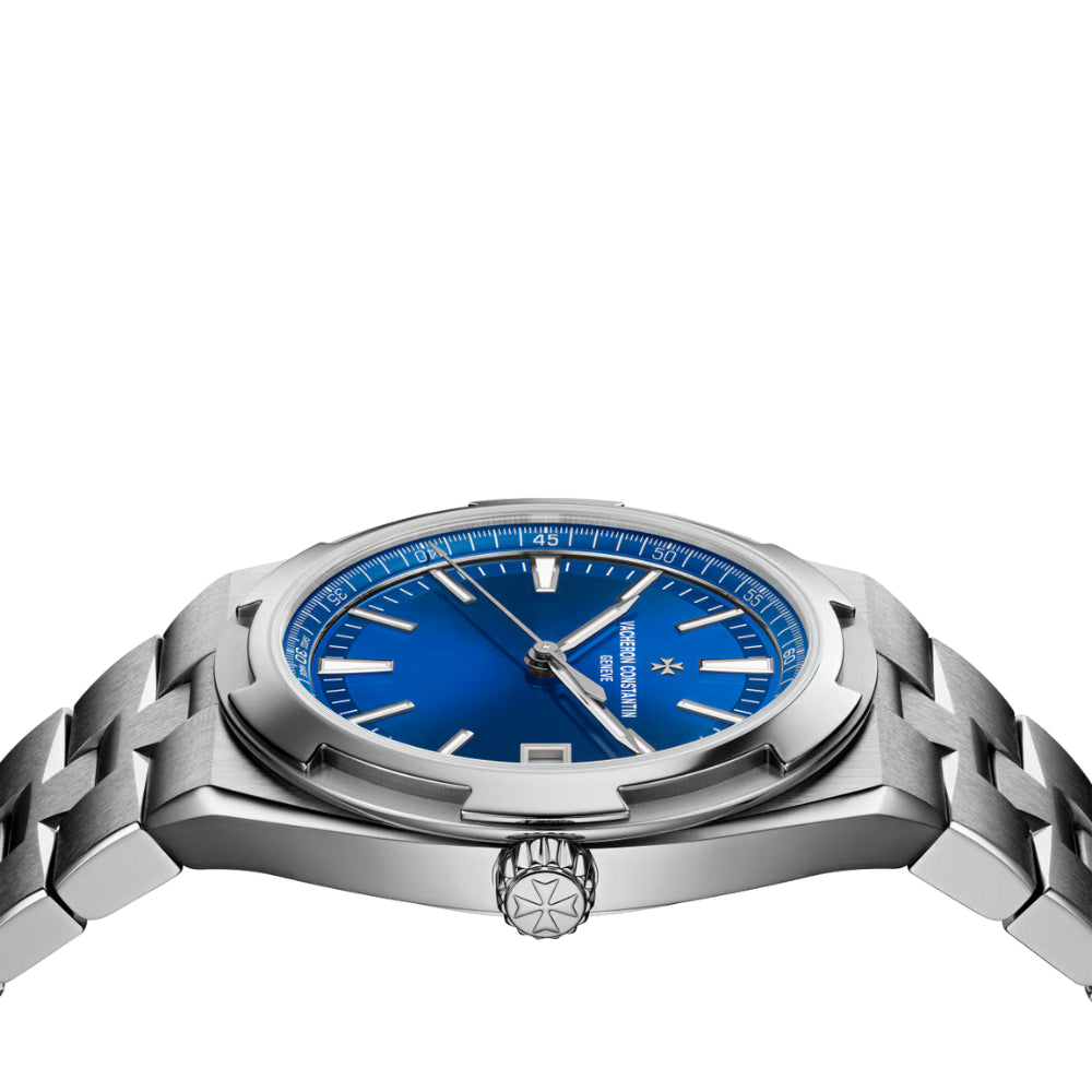 The V Self-Winding Ref. # 4500V/110A-B128 combines elegance, versatility, and technical mastery. Its sunburst blue dial with 18K gold accents, interchangeable strap system, and 150 m water resistance ensure both style and functionality. Powered by the robust in-house Caliber 5100 with 60-hour power reserve and Hallmark of Geneva certification, this watch offers precision, reliability, and effortless adaptability for any occasion